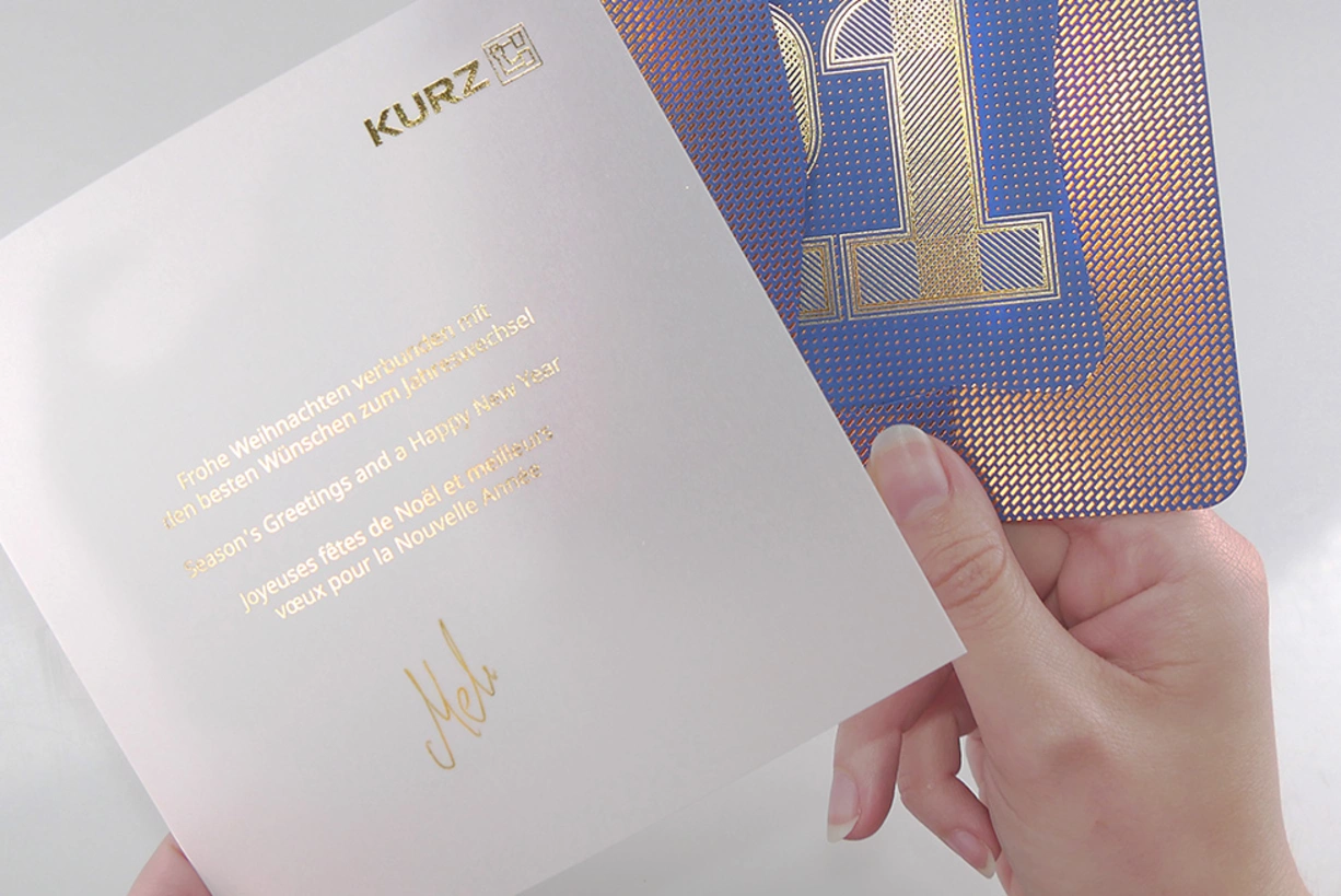 Was wäre eine Weihnachtskarte ohne ein paar persönliche Worte? Damit auch unsere Festtagsgrüße im edlen Gewand erscheinen, verwendeten wir unsere LUXOR® 385 für eine filigrane Heißprägung auf einem semitransparenten Papiersubstrat. So konnten wir unsere Grußtextkarte problemlos in 23 Sprachvarianten realisieren.
